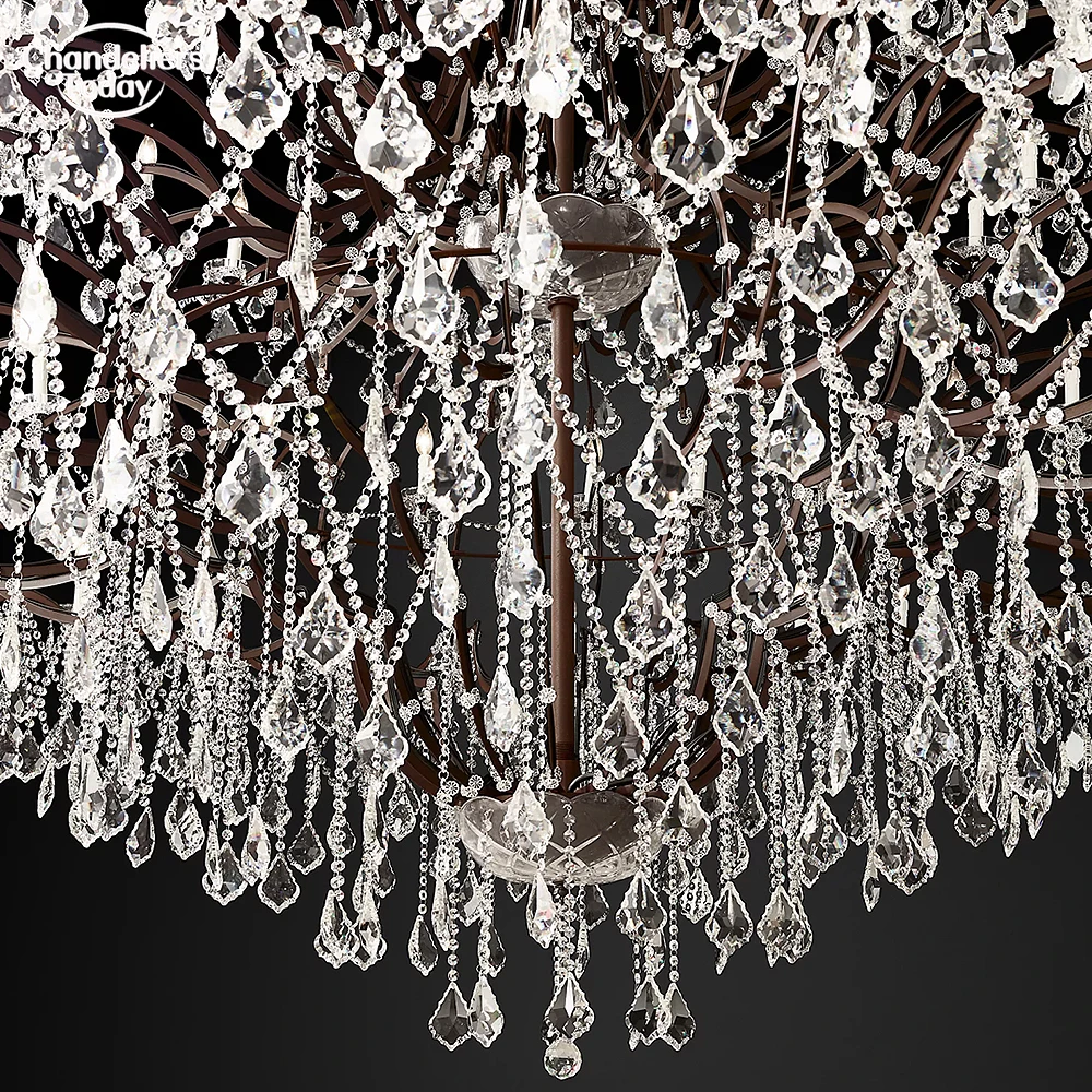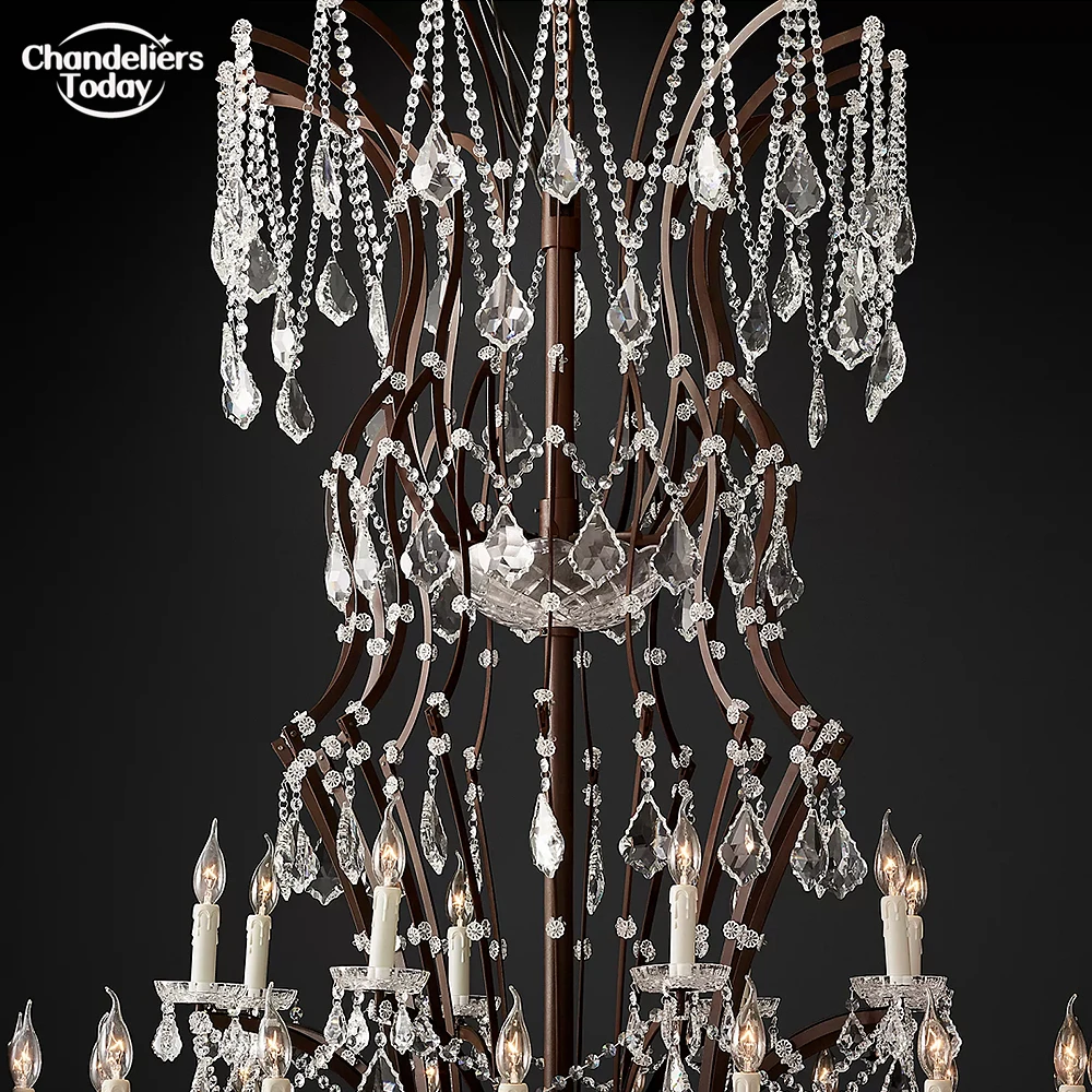 19th C. Rococo Iron & Crystal Chandelier 140-Light Ourdoor Grand Chandelier Lighting LED Vintage Clear Smoke Crystal Lustre Lamp