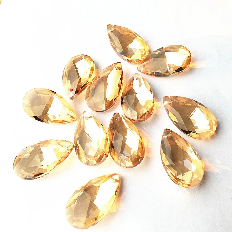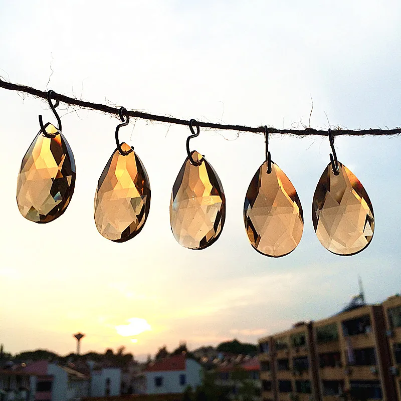 Top Quality 38mm 50pcs Champagne Crystal Faceted Lighting Parts Glass Nice Chandelier Water Drop Pendant For Curtain Accessories